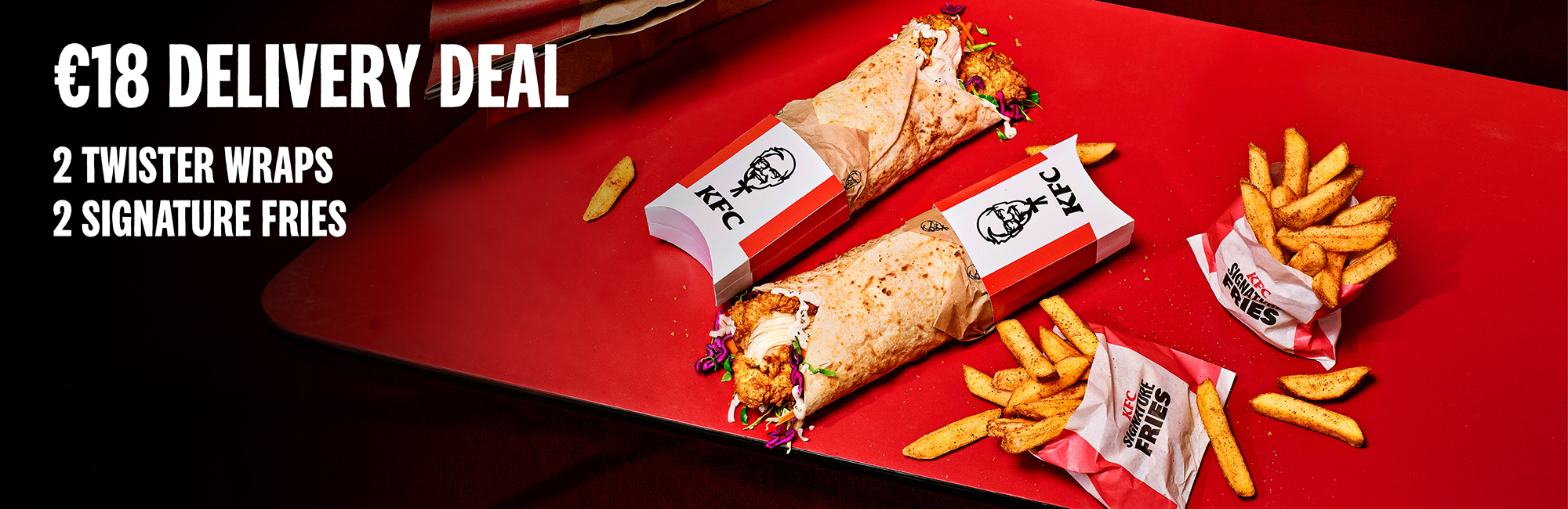 2 TWISTER WRAPS & 2 SIGNATURE FRIES FOR €18, DELIVERED TO YOUR DOOR.